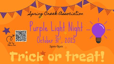 Trick or Treat in Spring Creek, Door to door candy galore. If you display a purple light,